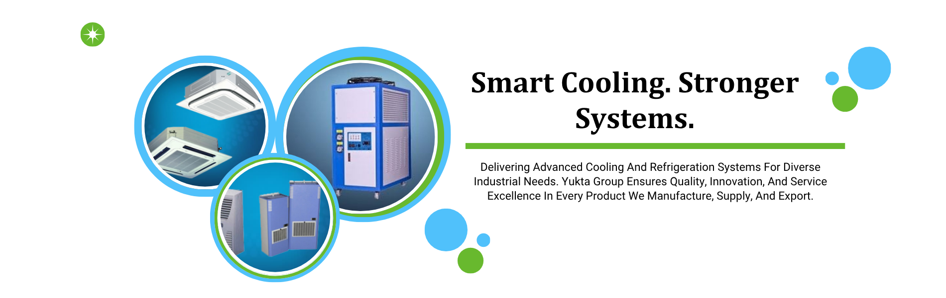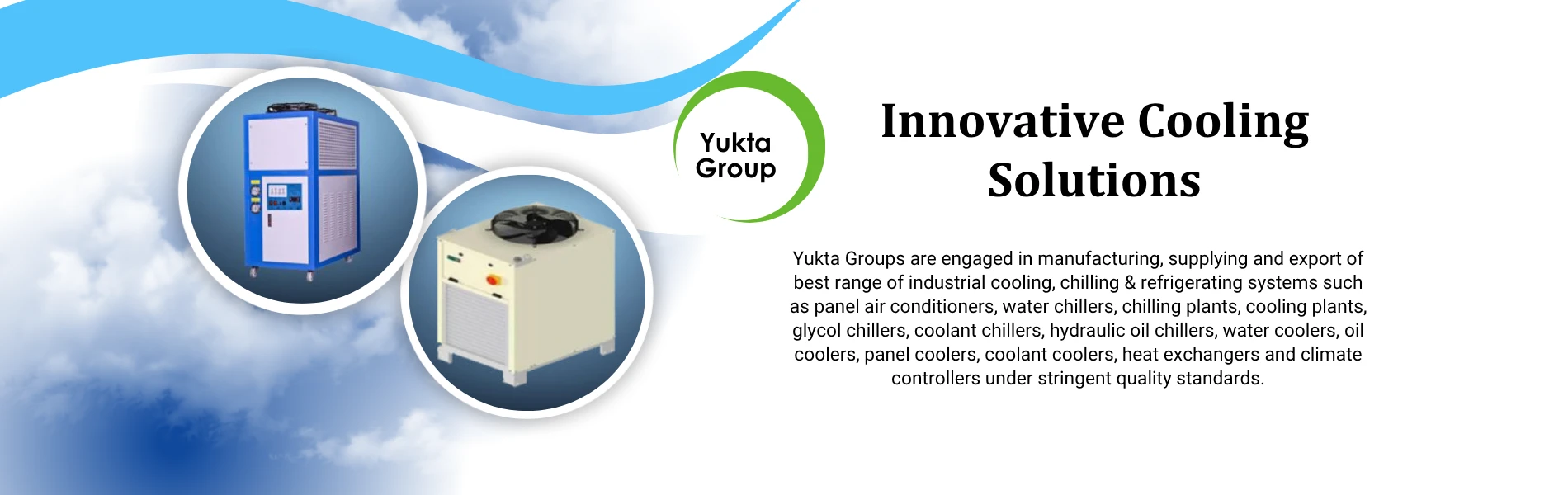 Yukta Groups are engaged in manufacturing, supplying and export of best range of industrial cooling, chilling & refrigerating systems such as panel air conditioners, water chillers, chilling plants, cooling plants, glycol chillers, coolant chillers, hydraulic oil chillers, water coolers, oil coolers, panel coolers, coolant coolers, heat exchangers and climate controllers under stringent quality standards..